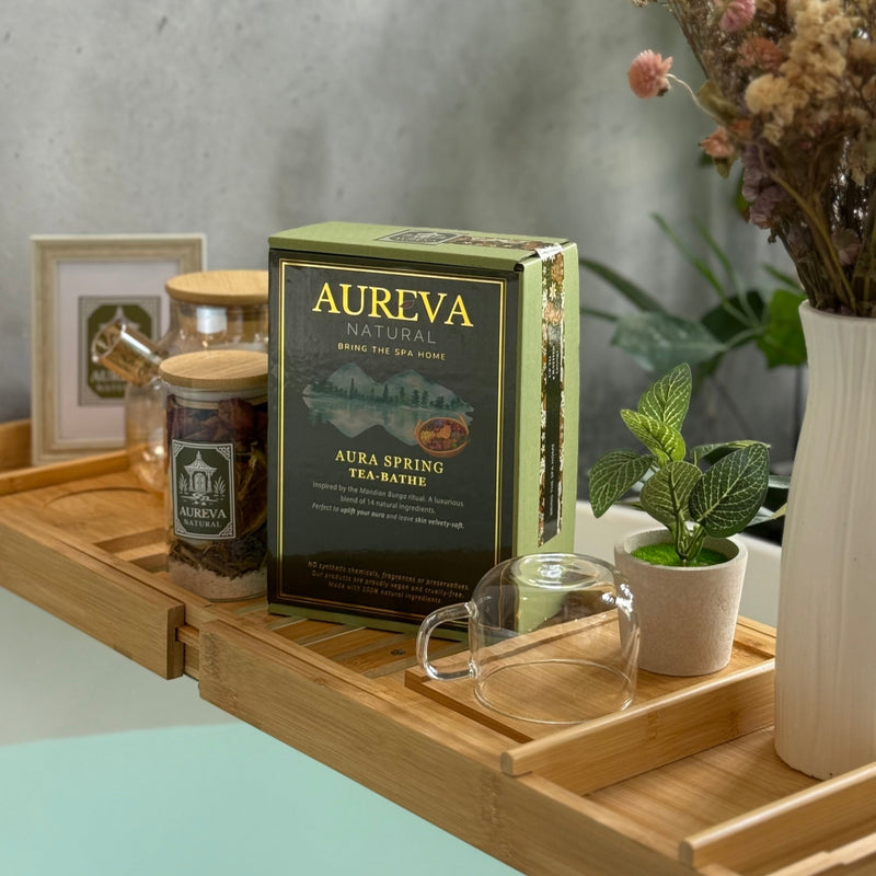 Each Aureva tea bath is lovingly crafted in small batches — never rushed, never mass-produced. From sourcing clean, premium herbs to perfecting each blend through thoughtful curation, every step is done with care to ensure quality, consistency, and heart